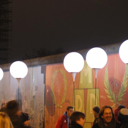 Ce 9 novembre 2014, Berlin a fêté les 25 ans de la chute du mur. En attendant l’article sur le 9 novembre 1989, voici quelques photos et impressions de la fête du jour. Des ballons, leurs parrains, la foule le long de la “frontière lumineuse”, les blocs bleus présentant 100 histoires du mur, la East Side Gallery et les ballons dans le ciel…